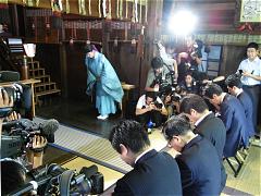 総裁選告示日である本日、築地の波除稲荷神社にて必勝祈願を行なった。
