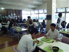今日のランチは愛媛大学農学部の学食でいただく。食後は外のカフェテラスで学生たちの輪に交じり食後のひとときを楽しむ。