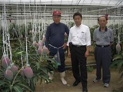 ビニールハウスでマンゴーを栽培している方にお話を伺う。