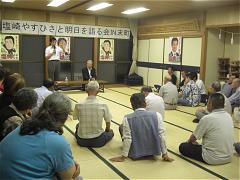 松山市末町で国政報告会を開催し、松山地域の経済状況の具体例を挙げながら、国政報告を行いました。地方の景気や自民党の今の動きについて参加された皆さんと意見交換を行いました。