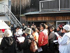 今出地区にある西国三十三所観音霊場を地域の方と一緒にご詠歌をあげながら回る。敷地内にある社は、そこにお住まいの方が維持管理をされるそうだ。みかんやチョコレートのお接待を受けながら、清々しい気持ちでのお参りだった。