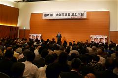 来たる参議院議員選挙に向けて、山本順三参議院議員の勝利を期し、塩崎やすひさ後援会による決起大会を開催する。応援に橋本聖子参議院議員も駆けつけて頂き、みなさんとともに一致団結して戦うことを誓う。