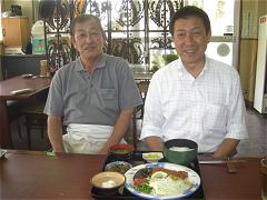 今日の昼食は、高砂町3丁目、樋又通り沿いの「高砂食堂」でとる。ボリューム満点で栄養バランスもしっかり取れた、日替わり定食「とんかつ定食」(600円)を頂きました。高校生8人の下宿のお世話もする店の親父、植木喜代美さんと。