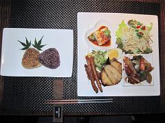 祝谷にある「teq*teq」で日替りランチを頂く。今日のおかずは鶏とピーマンの甘酢煮・焼き魚・ゴーヤチャンプル・じゃこかつ・冷や奴・サラダなど、聞けばおかずのプレートには常に7品以上がモットーだという。玄米のおむすびや食後のコーヒーとデザートがついて900円です。松山市内から県道祝谷線を北に上ると右手にお店があります。