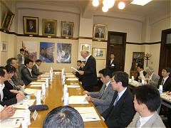 小樽市長の山田勝麿氏から市政の概要を聞く。特に力を入れている観光について、今から10年余り前までは、ロシア人を中心に、せいぜい1700人余りだった外国人観光客が、今や香港、台湾、韓国、中国などから、年間4万人弱に。特に中国人観光客は、平成16年の288人が平成21年には5500人と、約20倍の急増ぶり。中国人留学生のボランティアにも手伝ってもらい、市をあげて誘致に努力中。