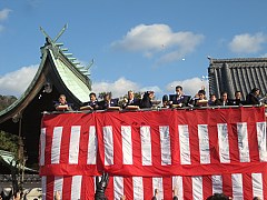 毎年恒例の湯神社初子祭に今年も参加する。大勢の参拝客に、今年も多くの福が訪れること願い餅まきを行う。