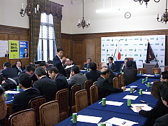 各委員会理事を集めての会議が急遽開かれ、23年度予算の迅速な審議や「東日本巨大地震災害対策与野党協議会(仮称)」の設置など党の方針が提示される。まずは被災地域でも来月予定されている統一地方選挙を延期させるため特例法策定にとりかかる。