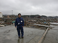 みぞれ交じりの雨の中、町が完全に消えてしまった南三陸町の元の繁華街に立つ。