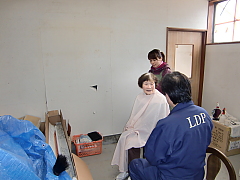 JENの募集で来てくれた理容師から散髪を受ける一人暮らしのこの女性、腰まで津波の海水に浸かりながら、何とか自宅2階に逃げる。3日目の午後に自衛隊のボートで救出されるまで雪を食べてしのいだという。「何しろお腹が空いていたので、病院には行きたくない、チョコレートでも何でも良いから食べ物を下さい!と自衛隊の人に言った」という。