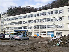 石巻市立湊小学校の避難所では、電気はまだ通っておらず、水道が昨日からやっと来だしたとのこと。ご覧の通り、全ての教室が避難所になっており、被災者に移動してもらって学校を再開をするかどうか、微妙だ、との説明を受ける。