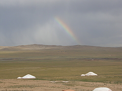 モンゴル大統領との会談後、外に出ると、ゲルが点在する大平原に虹が架かる。大統領との意見交換で、日蒙関係強化の話で盛り上がっただけに、日蒙間の虹の架け橋か、と感動。