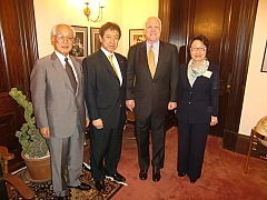 前回の共和党大統領候補であったジョン・マケイン上院議員を議会オフィスに訪ねる。普天間問題は、中国の台頭など、世界の安全保障情勢の変化を踏まえ、抑止力強化、ベスト費用対効果の実現のための2原則に従い、現行案に拘らず一呼吸入れて冷静に考え直すべき、との考えを述べられる。