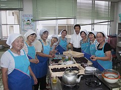 子規記念博物館前で、開催されている「子規さん好みの屋台村」の準備におじゃまする。私も松山食生活改善推進協議会の皆さんが屋台で販売される松山鮓の寿司飯をうちわで扇ぎました。