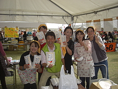 グルメゾーン、物販ゾーン、展示ゾーンに分かれ、それぞれが自慢の逸品を披露していました。【写真:「NPO大好き中島瀬戸内の再会桜」ブースの皆さんと】