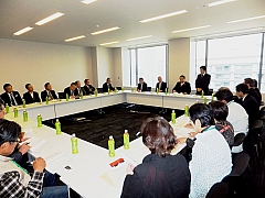 本日、TPPから日本の食と暮らし・いのちを守り政府の交渉参加表明を阻止する国民集会に参加するため上京された、県下JAの皆さんと意見交換会を行う。