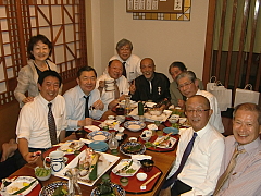 初めての砥部焼新潟展開催に際し、大変お世話になった実行委員会の皆さんと。中村砥部町長の持つお酒入り砥部焼ピッチャーはお店に寄贈。