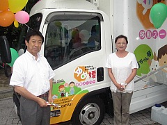 今年で3回目の開催となるレディ薬局主催「健康フェスタinえひめ2012」に参加。会場は展示ブースに殺到する来場者で一杯。会場外の出店には、生活力アップの工夫のオンパレード。写真は、松山市内の高齢者など「買い物難民」向けに食料品や生活必需品を載せるよう、「移動スーパー」と称して、冷蔵装置などを搭載できるよう改造した移動販売車。何と、よく知っているビルメン業の2代目などの発案だ。高齢化の中で心配されている住民の生活ニーズに応えるとても良いアイディアだ。