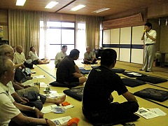 引き続き隣町で「塩崎やすひさと明日を語る会」を開催。安全保障や税金の使い道、再生可能エネルギーの利用について、皆さまのご意見をお聞きする。