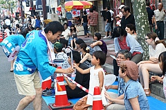 地元松山の夏のお祭り「松山まつり」に参加。「青色申告会女性部連」の皆さんと野球拳おどりを行いました。沿道には大勢の皆さんが観覧に来て下さっています。