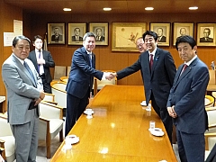 来日中のボルド・モンゴル外務大臣が安倍総裁を表敬訪問し、モンゴル議連の武部会長とともに立ち会う。今年は国交樹立40周年の節目の年であり、同国で8月に発足した新政権の閣僚としては初来日となる。二国間関係の一層の発展について意見交換を行い、私からは北朝鮮による拉致問題解決へ向け、同国の協力を仰いだ。