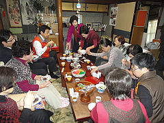 美味しい、手作りの「おはぎ」を皆さんと食べながら、ミニ集会を行う。暮らしの中での問題や、国政に対する要望から地域の話題まで、様々な意見を交わす。