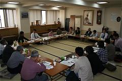 JT工場跡地利用計画に関し、松山市の中心部町内防犯協会女性部、学生ボランティア、神輿の幹部、デパート、若者向けファッションビル、そして商店街の方々など、立場を異にする人々が集い、活発な意見交換。