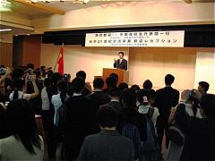 「日中21世紀交流事業」の一環として昨日約200名の中国人高校生が来日し、レセプションで歓迎挨拶を行う。今回の来日は交流事業の第1陣で、一行は24日までの9日間滞在し、千葉、茨城、滋賀、三重、奈良、大阪、京都を訪れ、高校での合同授業や部活動に参加。ホームステイも2回経験する予定だ。日本側は今年度中に中国人高校生1100人を短期滞在で招待するほか、中期滞在の高校生も100人程度受け入れる。中国側も今年から日本の高校生を中国に招待する予定だ。これを期に交換留学制度を継続させていかなければならない。