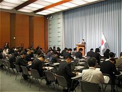 今年初の定例記者会見。米軍普天間飛行場の移設問題などの質問が出る。