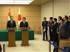 私が議連事務局長を務めるシンガポールのリー・シェンロン首相が来日。首相官邸にて安倍首相と会談する。経済連携協定(EPA)の改正議定書に署名後の記者会見に立ち会う。
