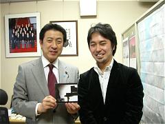 私も賛同者となっている「more trees」(URL→http://www.more-trees.org)の事務局長:水谷伸吉氏から、議員会館にて話を伺う。「more trees」は、先日ニューヨークで再会した坂本龍一君が立ち上げた中間法人で、"森林に特化したカーボンオフセット"をメインコンセプトとし、第一号の森は高知県四万十川源流の梼原町でスタート。間伐を行ない健全な森を作り、間伐材は、オリジナルグッズとして有効活用している。本年中には、東南アジアでの森作りも始める予定のようだ。写真で私が持っている坂本氏のCD(3月発売)もカーボンオフセットの概念(このCD1枚作るのに3kgのCO2が排出されることが明示されており、それをオフセットできる値段設定になっているとの事)の下、生産・流通される予定とのことで、今後私が出来る事は、できるだけ協力していこう。