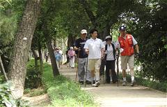 松山市堀之内にて、えひめ高齢者運動研究会主催による第1回ノルディックウォーク大会が開催された。2本のポールを手に持ち、全身の筋肉を使って歩くのである。現在、日本各地で高齢者の健康維持やメタボ対策で人気を集め、四国でも初めての開催ともあって、参加者は70名を超えた。自然の中で皆さんと一緒に汗をかき、とても気持ちの良い時間を過ごせました。