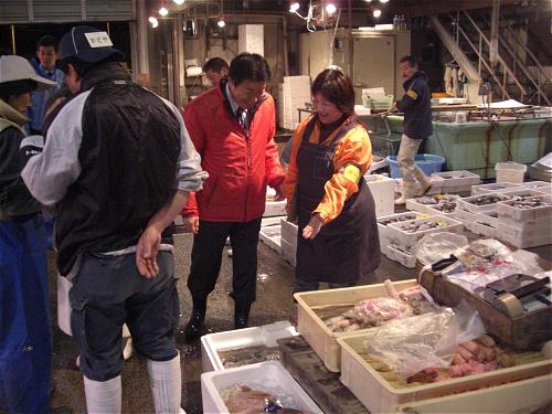 いつも新鮮な魚介類が並び活気溢れる水産市場での初市が盛況に開催されました。