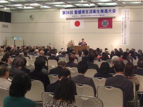 この度の総選挙で総力を挙げてご支援を頂いた愛媛県生活衛生同業組合連合会による推進大会に出席する。暮らしに密着している仕事をしている皆さんが元気で活力のある地域を作って頂くために私も国政の立場から皆さんが、より良い環境の中で仕事ができるよう闘って参ります。