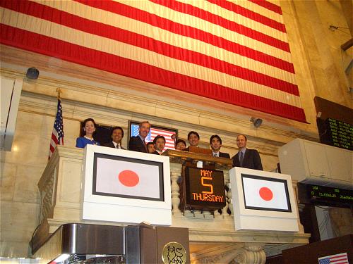 締めの鐘を鳴らすニューヨーク株式取引所のせり出しにて