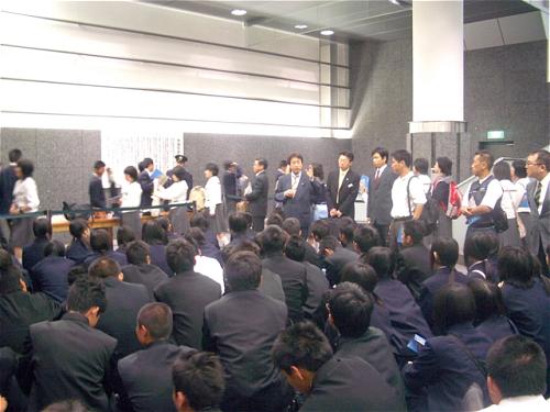 地元の松山市から修学旅行で上京してきた生徒達を前に、国会の役割や議員活動について説明。
