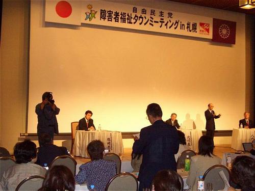 第3回を迎えた「障害者福祉タウンミーティングを札幌で開催。約400名のご参加を頂き、3時間の熱い議論。参加者の障害者施策に対する切実な思いを、八代英太自民党障害者特別委員長、北村直人自民党団体総局長と共に聞き入る。