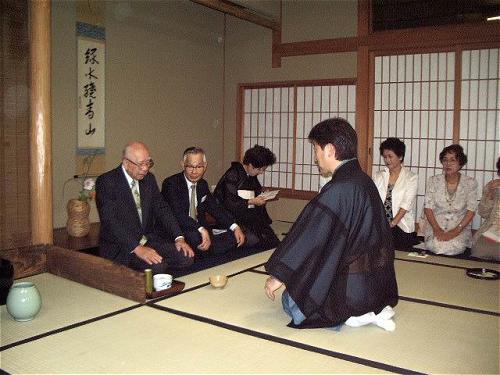 坐忘斎お家元より「緑水青山を繞る」とのお軸と「凌雲」との銘のお茶杓を頂き、七夕をテーマに7年振りに月次釜を担当、亭主を務める。「恵みの」大雨の中、700名を越すお客様にご来駕頂き、感謝。