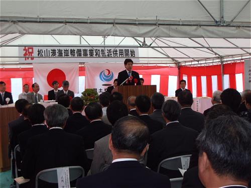 「松原青く砂白い伊予勝景の浜創生」とのテーマの下に、H15年よりスタートした国交省による和気浜・堀江の海岸整備事業のうち和気浜側が完成。後背地への被害対策は、直角の防波堤ではなく工夫をこらした砂浜で高波を受ける。バリアフリーの提と砂浜は、高齢者、障害者にも優しい。今後、さらなる大規模な堀江側にも着工予定。