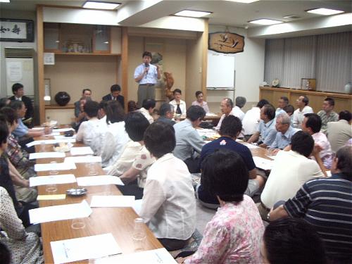 JT工場跡地問題から小泉構造改革の意味合い、次期政権の課題など、幅広い話題について意見交換。連休最終日にも関わらず、会場一杯のご参加を得て、感謝。