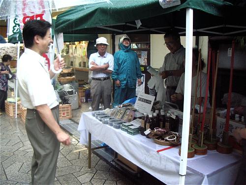 道後地区の新たな観光名物を作ろう、と地元旅館組合、商店街、町内会等が中心となり、「にきたつの路」を利用して、今日から道「にきたつの路日曜朝市」を開催。炭入れせんべいを試食しながら、談笑。あいにくの雨模様の中、朝からたくさんの観光客、地元市民で賑わいました。毎月第4日曜日の開催ですので、是非皆さんお揃いでお出かけ下さい。
