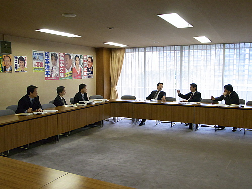 平成16年から消費税の総額表示ルールが変更されたことにより、仲卸業者が卸売、小売それぞれの商慣習の板挟みになっているという。今後現場から人を呼んでどこに問題が潜んでいるのか解明していく。今回は関係省庁から平将明代議士、菅原一秀代議士とともに説明を受ける。