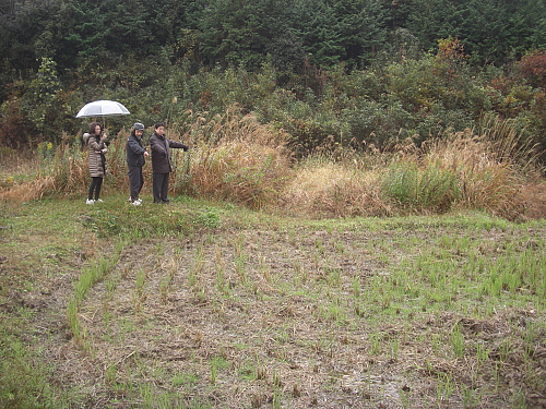 写真の全体が耕作放棄地だった場所で、手前が整備された農地、奥の方が整備していないそのままの農地です。