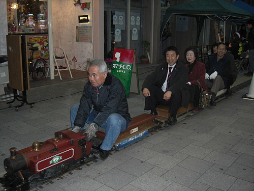 JRの元松山駅長が運転手を務めるミニSL。