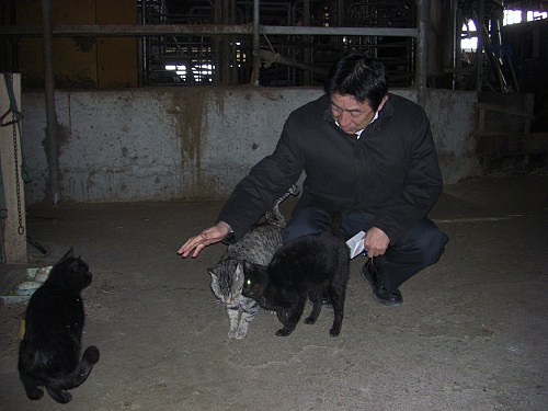 牛舎の中にはのら猫が数匹、ネズミ退治でいつの間にか住み着いたそうだ。自動搾乳機などの配線を、ネズミがかじって断線させることがあったが、今は見張りがしっかりしているので安心できるとのこと。