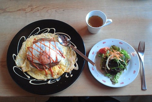 今日の昼食は、経営、店の運営、いずれも友人が仕切るマジョ・プレッソ・カフェにてオムレットライス。さっぱり味で、美味しかった!
