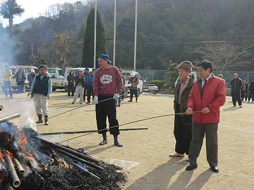五明地区どんど焼き祭りにおじゃまする。どんど焼きとは無病息災、五穀豊穣を祈る伝統行事で、どんど焼きで焼いたお餅を食べると1年間健康でいられるそうだ。今年1年元気に頑張ります。