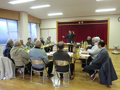 松山市南部に位置する窪野・奥久谷地区ミニ集会を開催する。少子高齢化による農家の後継者問題やTPPの問題、県道の拡張、消費税についてなどたくさんのご意見を頂戴しました。