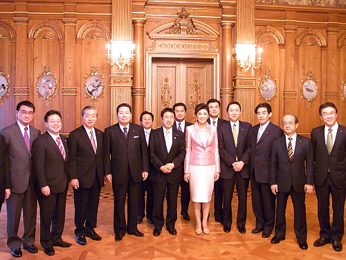 本日迎賓館赤坂離宮にて、首相就任後初来日をされているタイ王国のインラック首相との朝食会に招かれる。自民党の日本・タイ友好議員連盟の会長である私は日本側を代表して挨拶。今後ますます両国の友好関係が発展していくことを祈る。