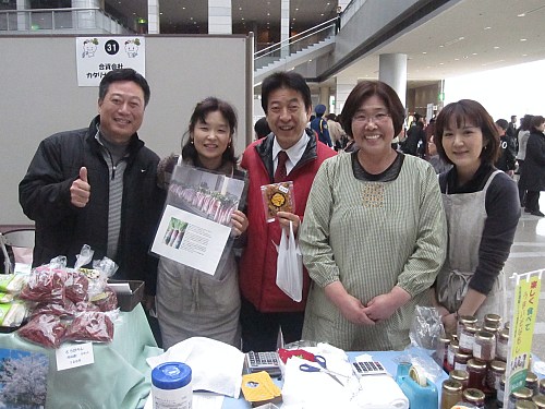 【写真:庄大根の醤油漬けを販売されているカタリナフード工房の皆さんと】