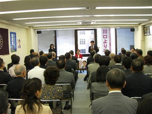 立候補中の川口順子さんの応援で行く。川口さんとは旧知の中で、まだ大臣になる前に私のセミナーでパネリストを務めて頂いたこともある。私の関係する方々にお集まり願い、ともに中身のある改革の推進を訴える。